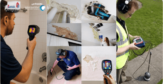 الكشف بالأجهزة: استخدم مهندس أجهزة متخصصة ومعدات وادوات لكشف تسربات المياه، مثل الكاميرا الحرارية، لتحديد المناطق التي تعاني من الرطوبة والتسريب.