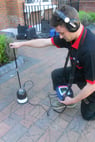 زيارة المهندس للمنزل بالاجهزة: المهندس بشركة Beetcare الذي يمتلك خبرة طويلة في مجال كشف التسربات، قام بزيارة وفحص المكان وبدأ بتقييم الوضع.
