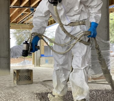 3- الفوم الرش : وهو عبارة عن رغوة بولي يوريثان مرنة تستخدم لعزل الأسطح من التسربات المائية والرطوبة ولتوفير عزل حراري فعال وتستخدم بشكل رذاذي على الأسطح لتوفير عزل حراري وحماية من التسربات المائية والهواء.